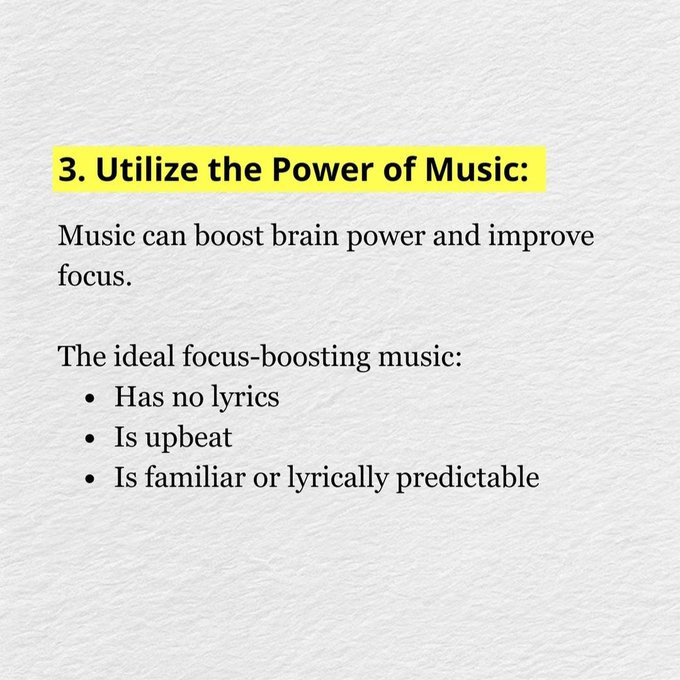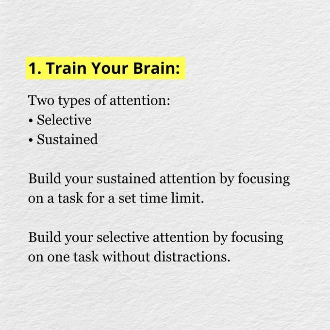 How to Boost Focus Permanently🧵Before It BreaksDec 20, 20253725Share1. Train Your Brain:2. Prioritize Focus:3. Utilize the Power of Music:4. Optimize Your Environment:5. Mindful Meditation:Subscribe